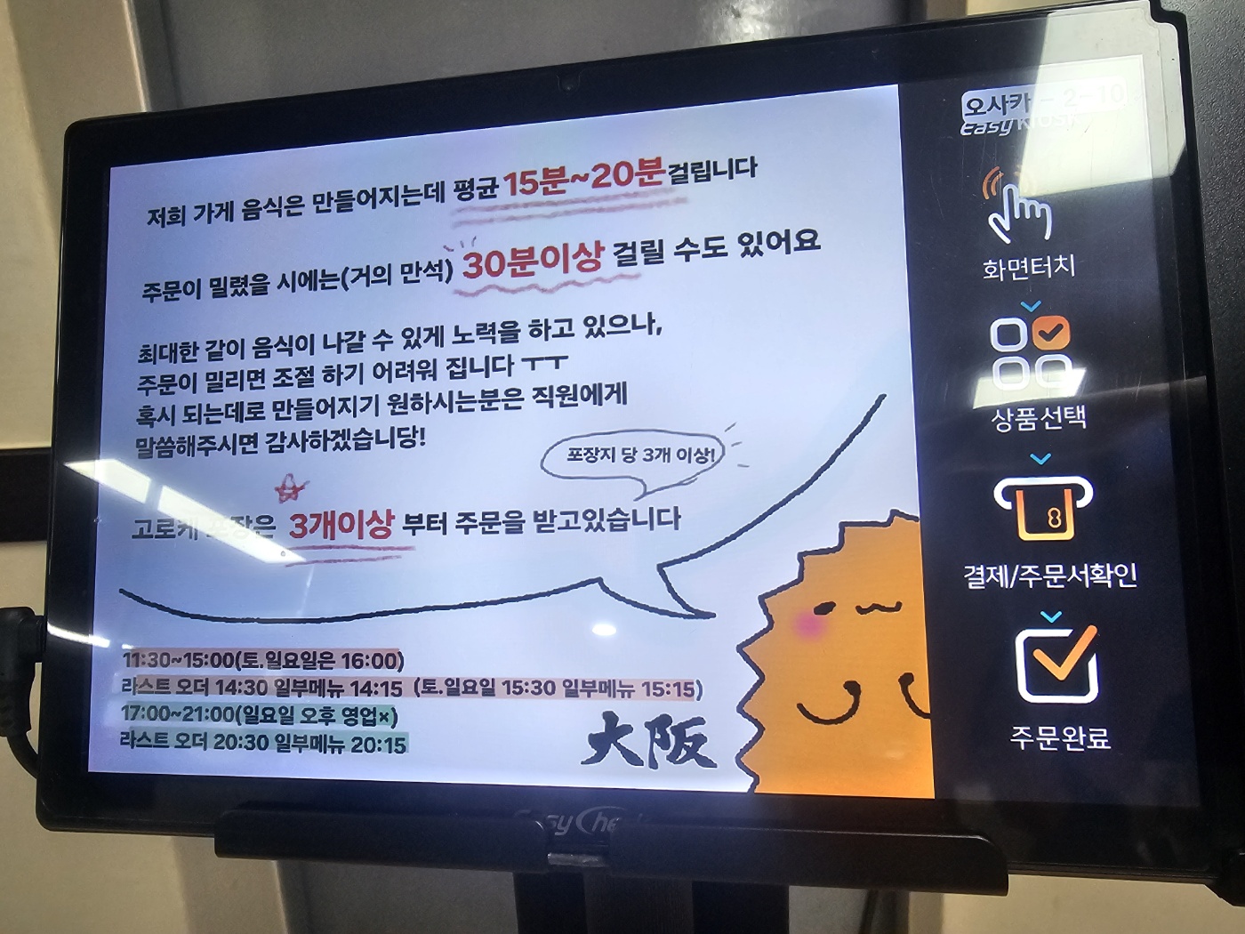 가게는 1층과 2층으로 나뉘어 있어요. 1층은 일본식 이자카야이며, 2층이 우리가 오늘 소개할 식당입니다. 외관에는 **"大阪(오사카)"**라는 큼직한 글씨가 눈길을 끌어요.