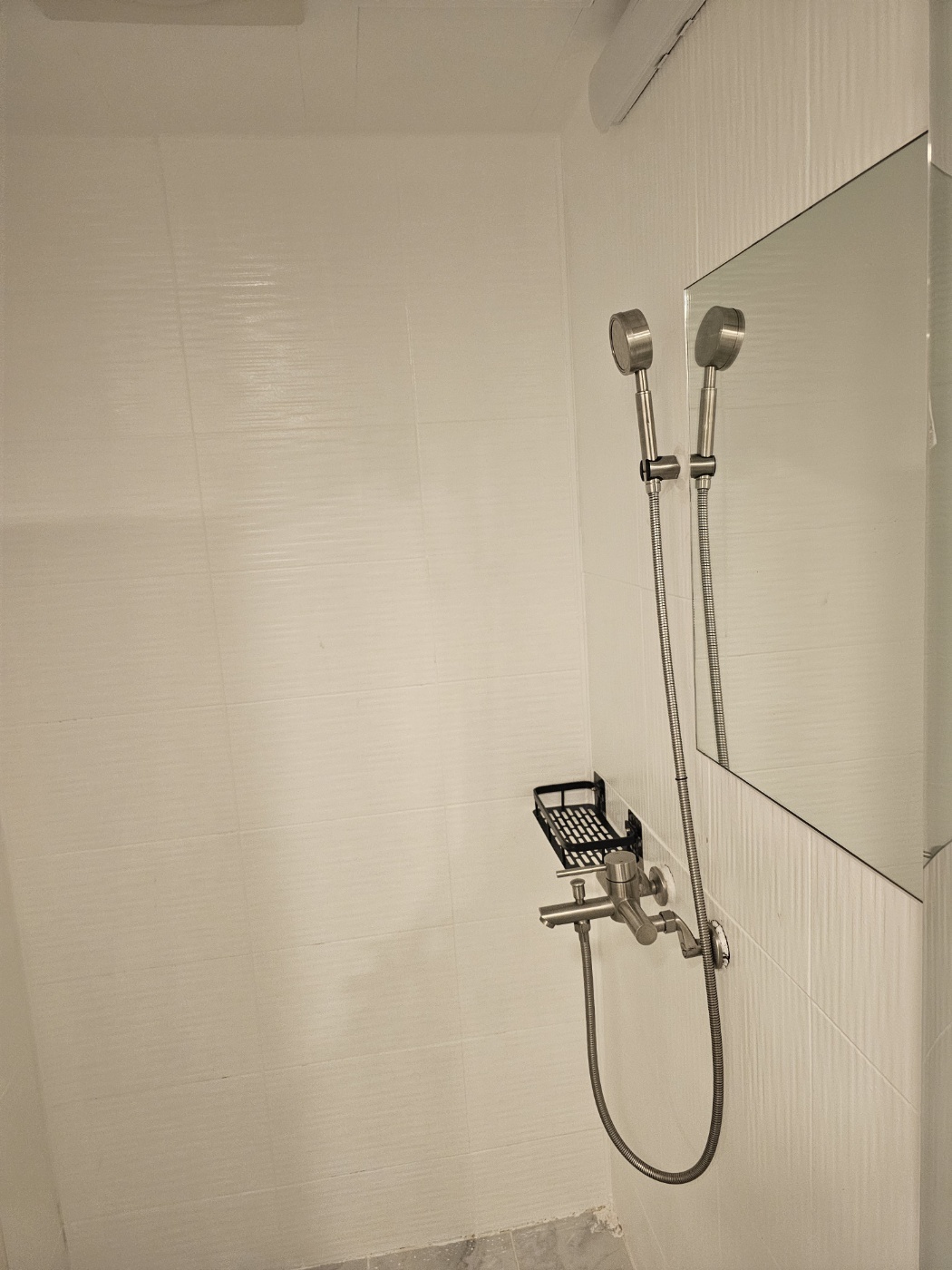 욕조 뒤편에는 별도의 샤워실과 화장실이 분리되어 있습니다. 샤워실은 단순한 벽면 타일과 손잡이형 샤워기만 설치돼 있고 해바라기 수전이 없는 것이 눈에 띄었어요. 특히 샤워기 각도를 조절할 수 있는 레버가 없어 등이나 머리를 씻을 때 불편함이 있었습니다. 샴푸와 바디워시 등 기본 어메니티는 제공되지만, 여분이 많지 않아 긴 머리라면 개인 제품을 챙기는 것을 추천합니다.