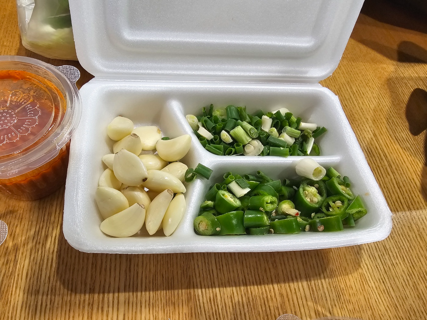 - 포장 구성에 마늘, 고추, 특제 된장소스, 깻잎, 배추쌈 포함돼 있어 포장가능맛집으로도 인기 만점