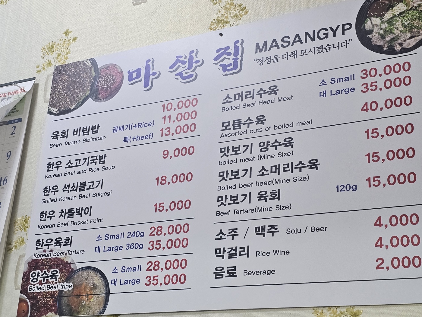 - **고기뭇국(두부 가득)**으로 육회비빔밥의 맛을 한 단계 업그레이드