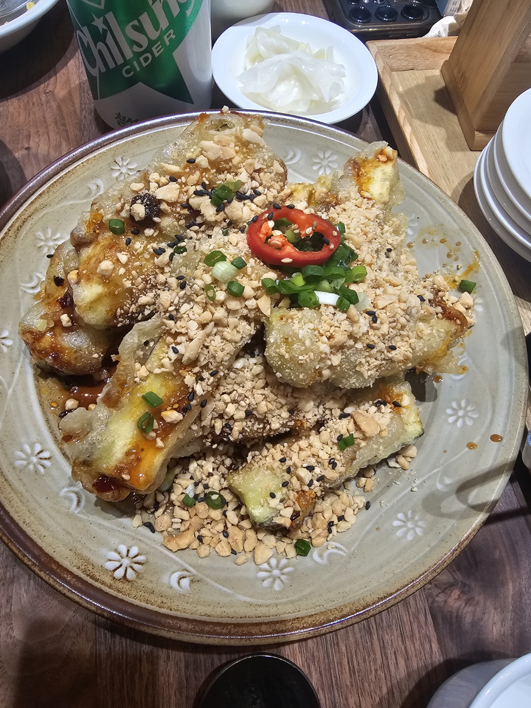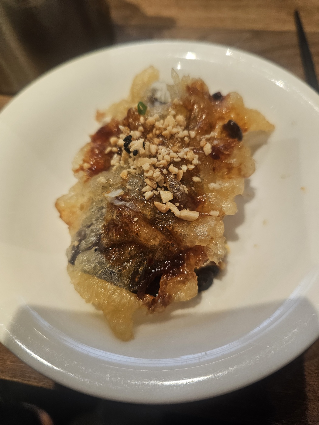 - 가지튀김은 “겉은 바삭, 속은 촉촉” 그 자체! 땅콩과 소스 조합이 기가 막히죠.