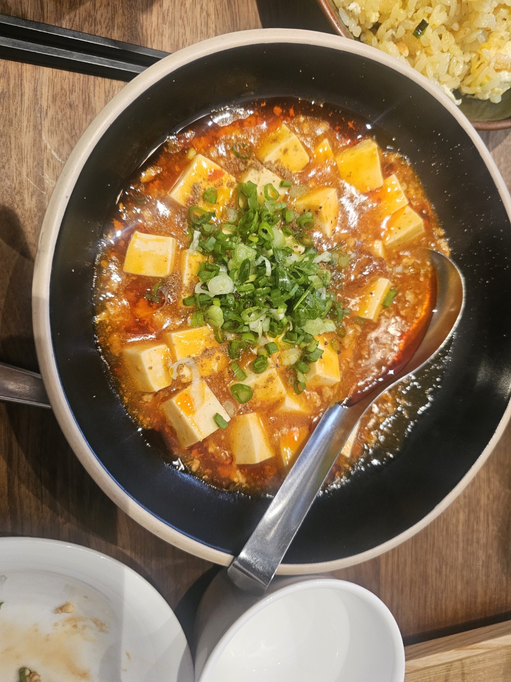 - 마파두부는 간이 딱 맞고, 볶음밥과 조합이 환상적이에요.