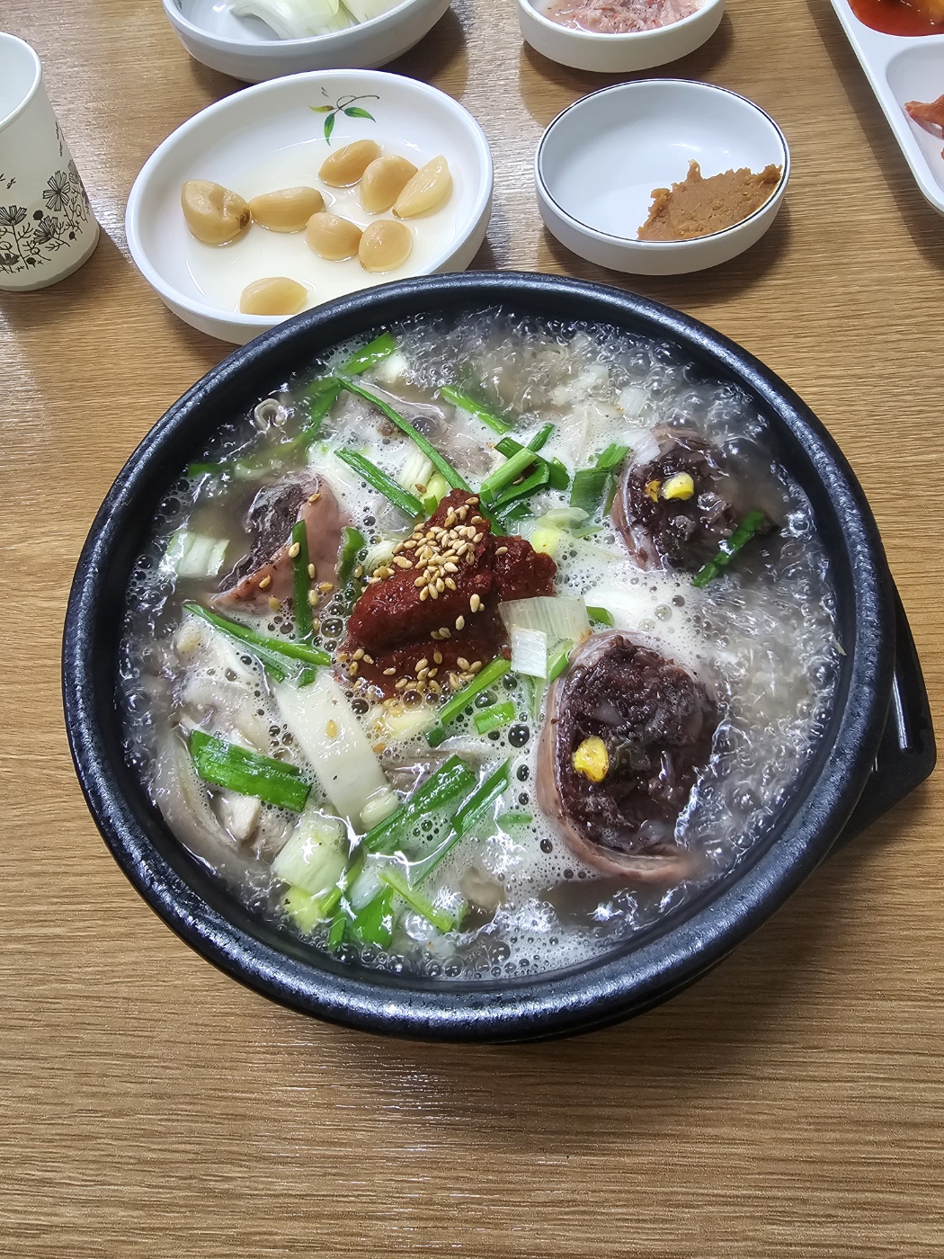 안에 피순대가 들어 있었는데, 개인적으로 피순대를 좋아하지 않아 하나만 먹고 나머지는 건드리지 않았어요. 대신 다른 부속물과 고기들은 잡내 없이 깔끔해서 국물과 함께 끝까지 맛있게 먹었습니다.