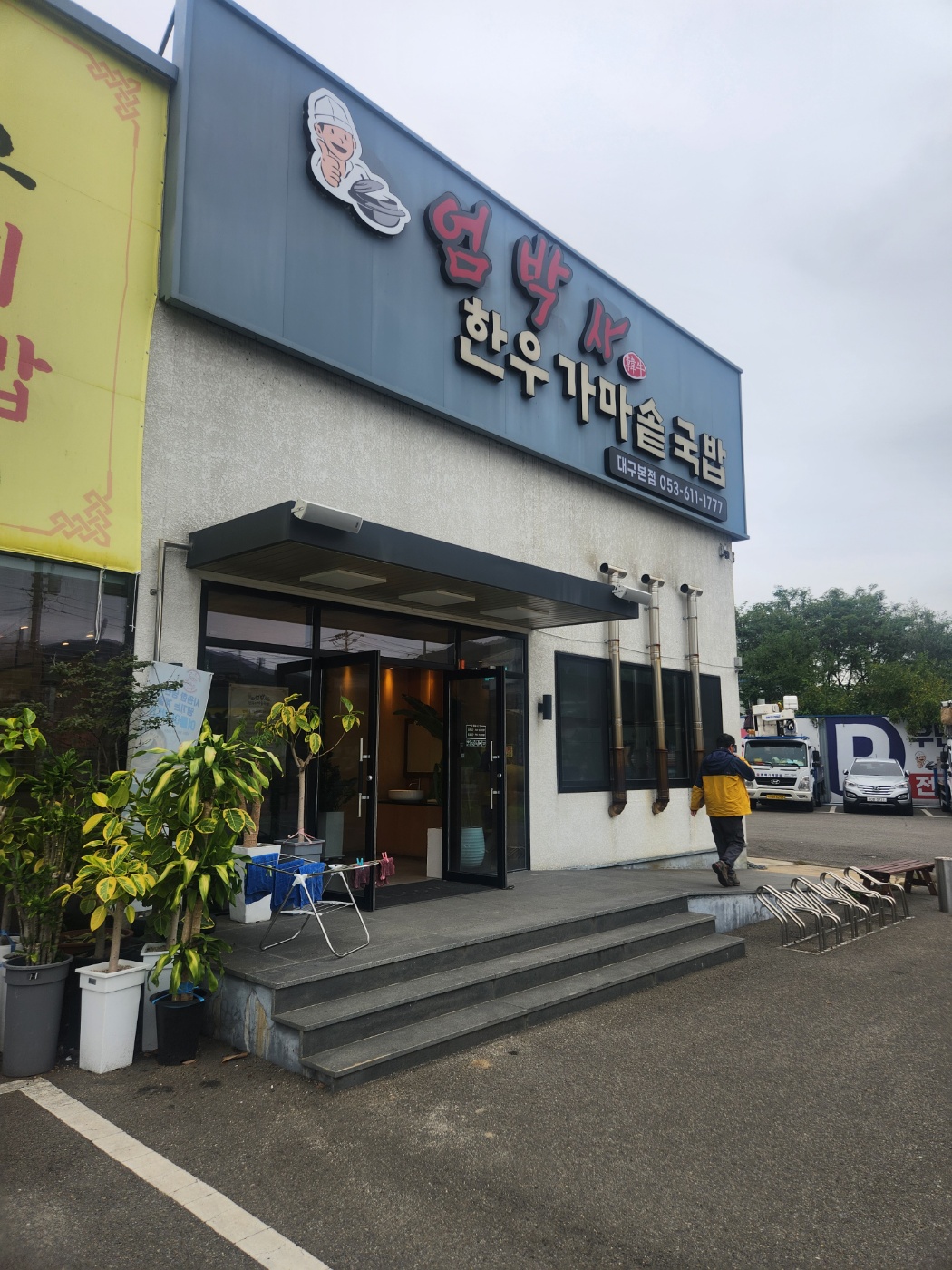 엄박사의 대표 메뉴는 단연 한우국밥이에요. 진한 국물과 푸짐한 고기 양으로 이미 현풍 국밥집들 사이에서 입소문이 자자하죠.