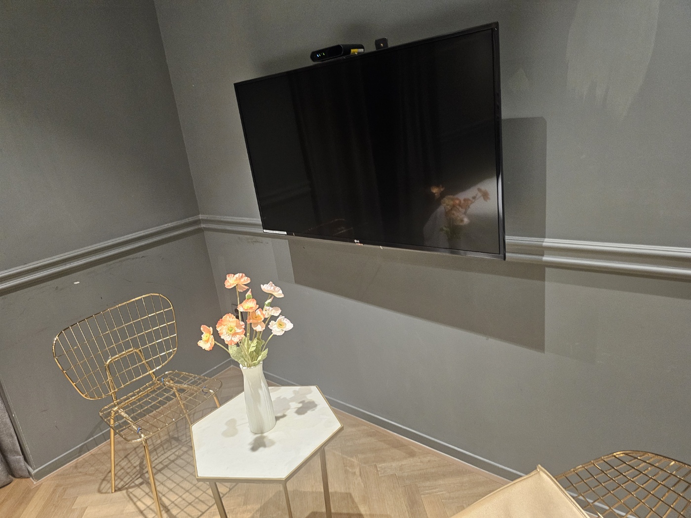 - ๋ฐฉ์ 1์ธ์ค ๊ธฐ์ค ์น๊ณ ์ ๋นํ ์ฌ์ด์ฆ์ผ. ํ ์ด๋ธ์ด๋ ์์๊ฐ ์๊ณ , ์ ์๋ ์ธ์ง์ ์ปคํผํฌํธ๊ฐ ๋ถ๋ฐ์ด์ฒ๋ผ ์๋ฆฌ ์ก๊ณ ์์๊ณ , TV๋ ์กฐ๊ธ ์์ ์ฌ์ด์ฆ์์ด.