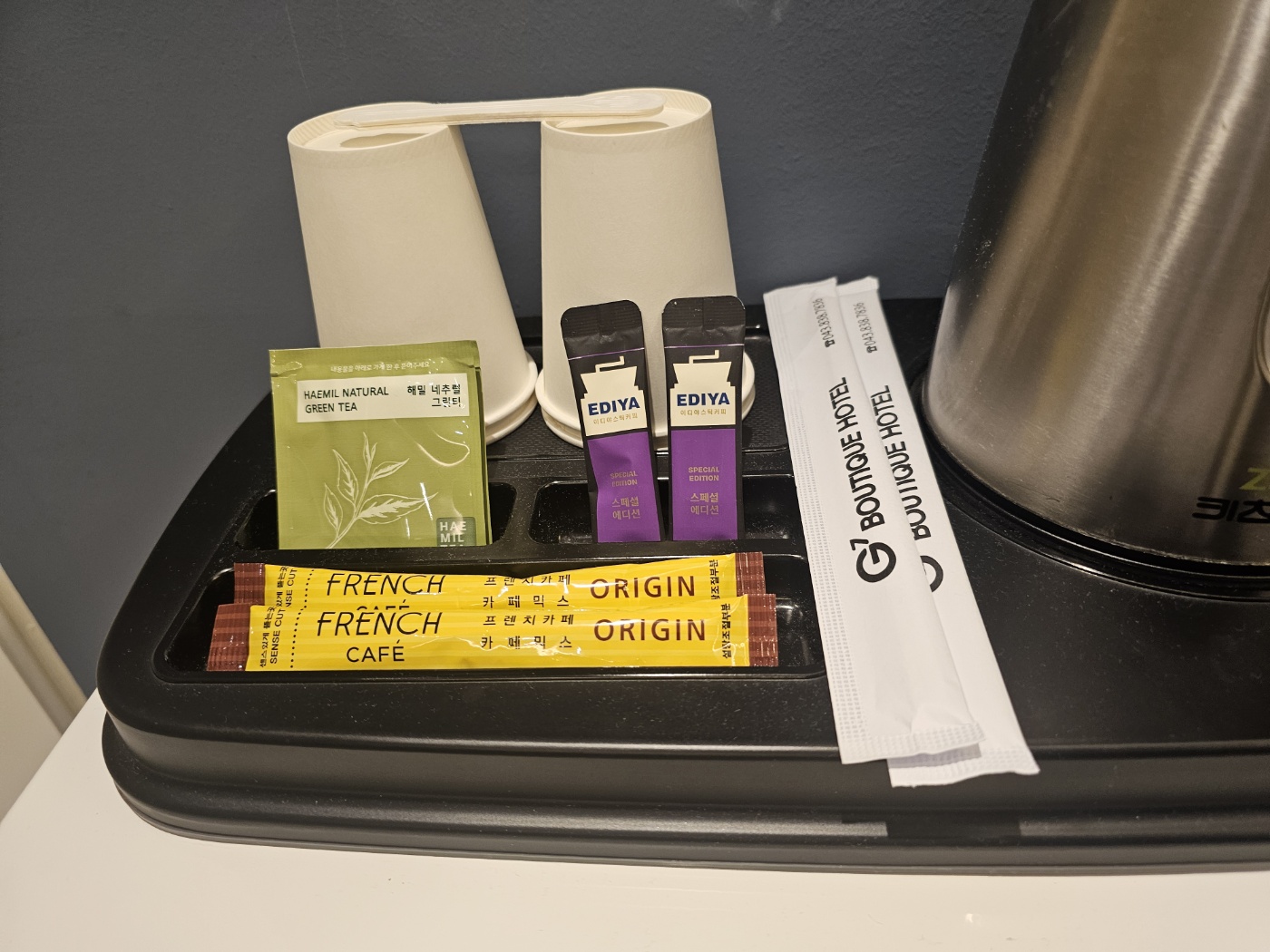 - ์ปคํผ๋ฏน์ค 2๊ฐ, ์ด๋์ ์ปคํผ 2๊ฐ, ์ข ์ด์ปต 4๊ฐ๊น์ง ์ค๋น๋์ด ์์ด์ “๊ฐ๋จํ ์ปคํผ ํ์” ๋ถ์๊ธฐ ๋ด๊ธฐ ์ข์์ด์. ์ ๊ฐ๋ฝ๋ ์์๊ณ ์.