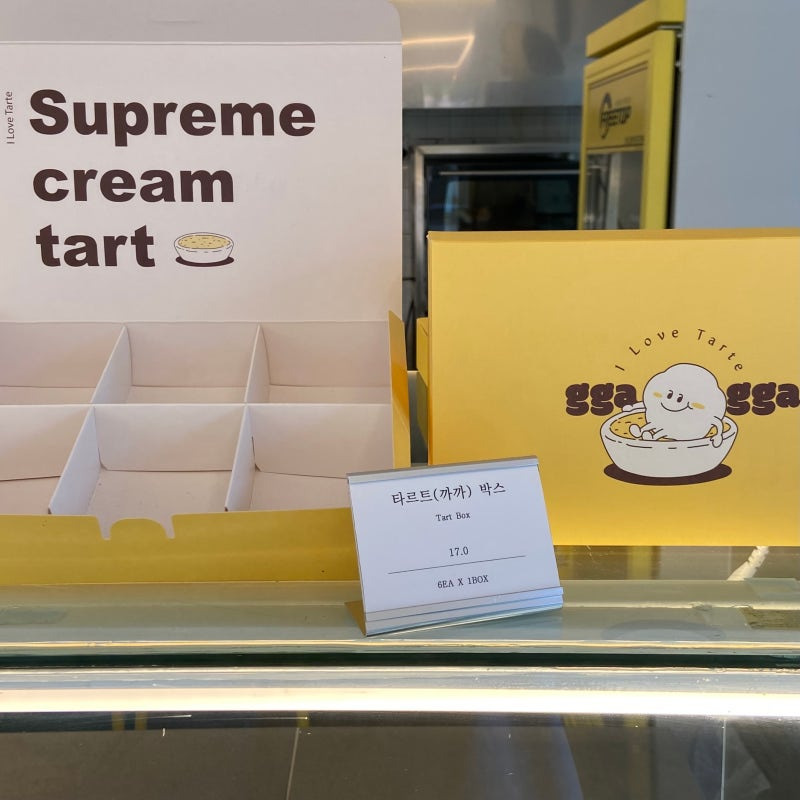 또 하나 재밌던 점은 캐릭터 협업 요소가 보였다는 것—타르트 박스나 포장지 등에 귀여운 캐릭터 디자인이 들어가 있어서 기념 선물용으로도 매력적이었어요.