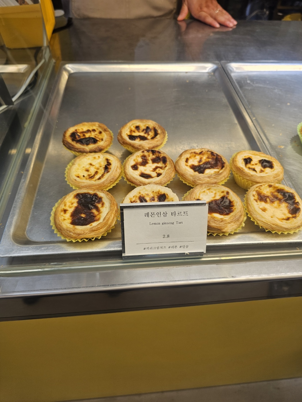 이어 쑥 타르트는 “말차 느낌인데 끝에 쑥향이 살짝 올라온다”는 후기가 딱 들어맞았고, 레몬 인삼 타르트는 상큼한 레몬 향에 인삼 특유의 풍미가 은근히 조화를 이루어 한국 특산물을 활용한 디저트란 이런 것인가 싶더라고요.