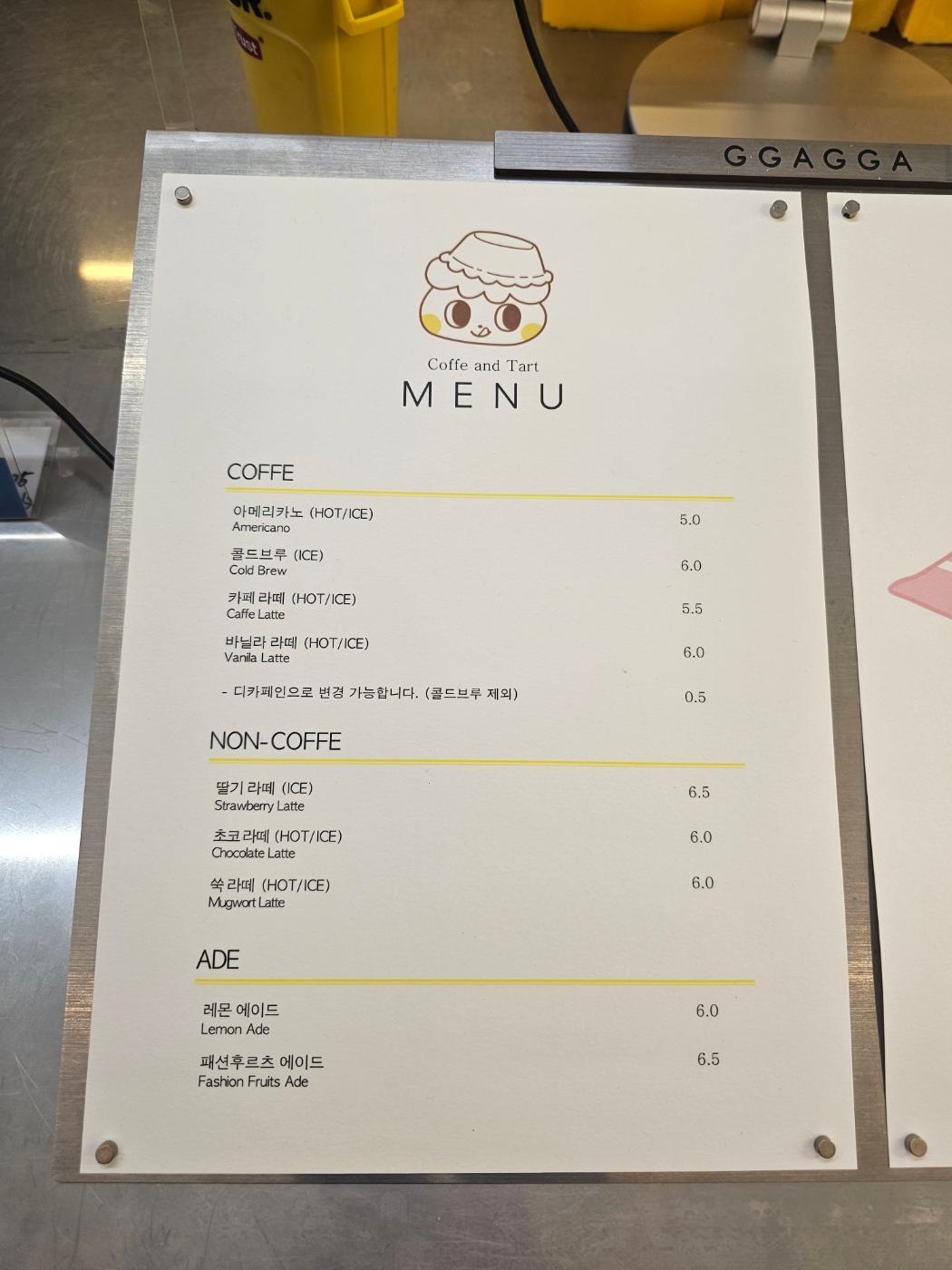 디저트 전문 매장이지만 음료 라인업이 충분히 갖춰져 있어 타르트 + 커피/라떼 조합으로 즐기기에 좋아요.