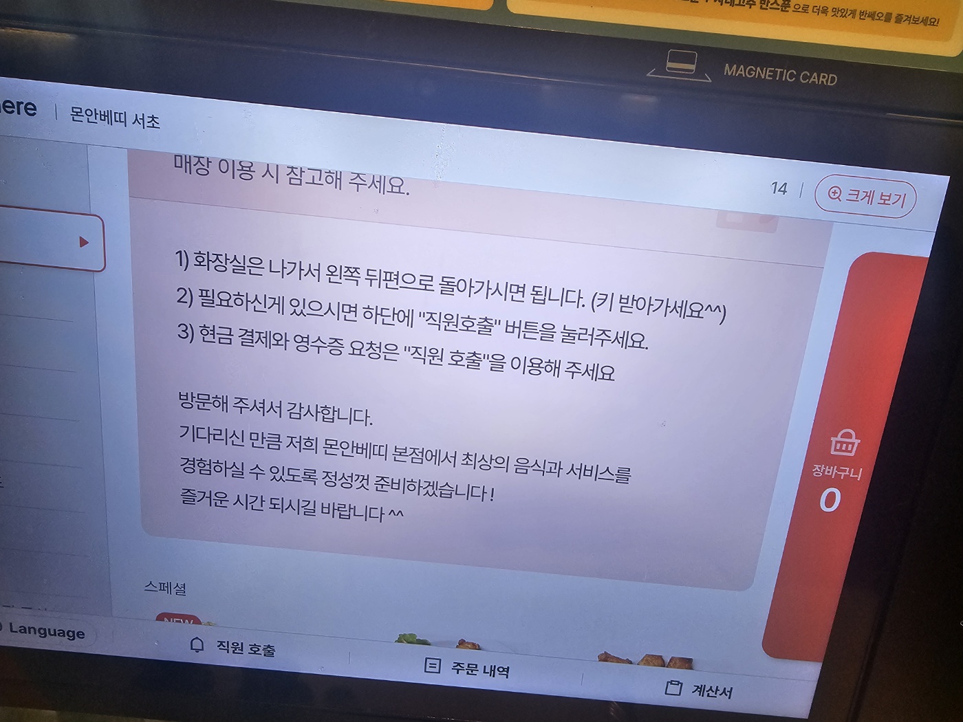 그리고 영수증까지 챙겨주는 시스템이 깔끔했고, 결제 화면이나 키오스크 기능이 잘 되어 있어서 “이후 기록용 – 영수증 리뷰” 항목으로도 좋았습니다.