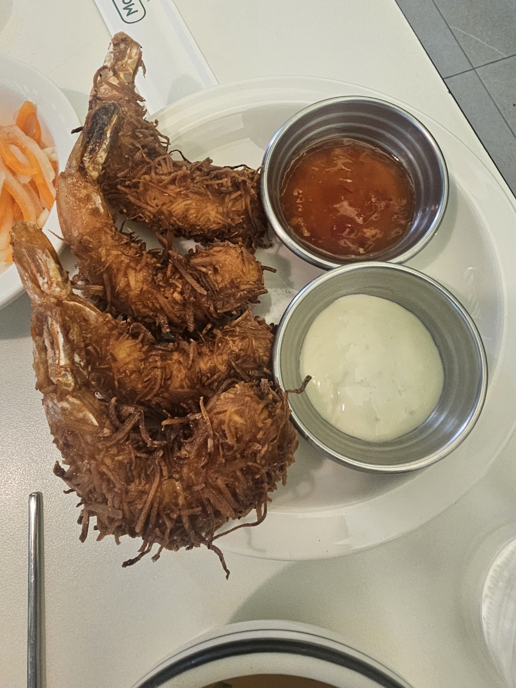 겉모습부터 바삭하게 올라가 있고 코코넛 향이 나긴 했지만 제가 먹었을 때는 겉이 약간 탄 듯한 느낌과 딱딱함이 있어서 “음… 다음엔 안 시켜도 되겠다” 싶었어요. 하지만 같이 간 동료는 “맛있다”라며 만족했기에 취향 차이가 크다는 건 확실합니다.