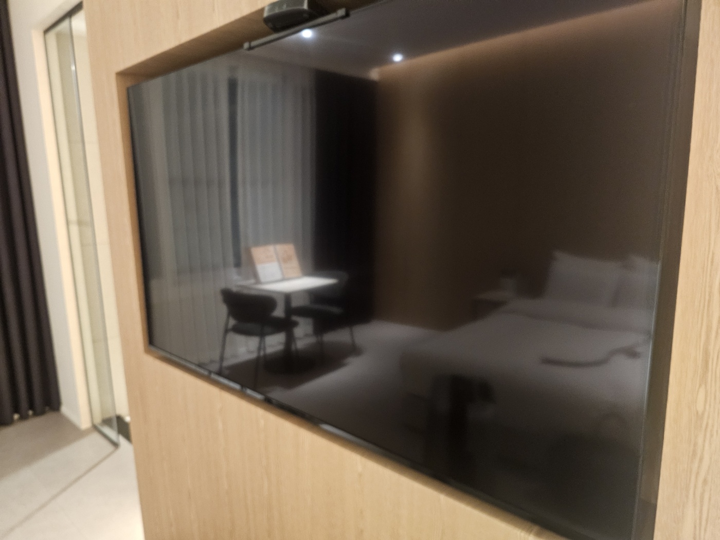 ๊ฐ์ค ๋ฒฝ์๋ ๋ํ ๋ฒฝ๊ฑธ์ด TV๊ฐ ์ค์น๋์ด ์์์ด์.