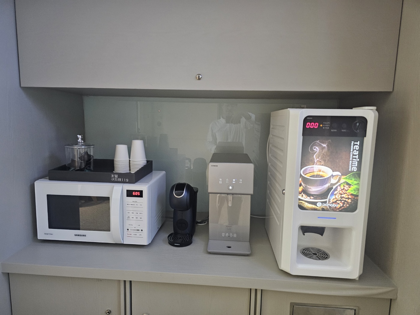 ์ปคํผ, ์ ์๋ ์ธ์ง, ์ํ๊ธฐ ๋ฑ ๊ธฐ๋ณธ ํธ์์์ค์ด ์ ๊ฐ์ถฐ์ ธ ์์์ต๋๋ค.