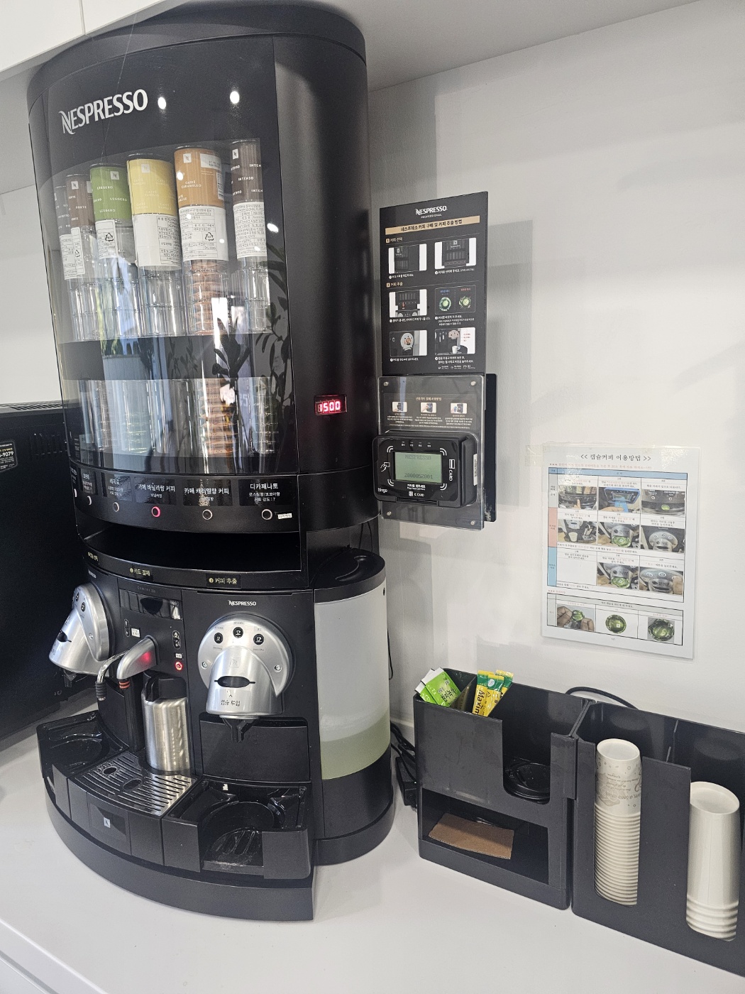 1층에는 셀프바가 있어 간단한 간식들을 이용할 수 있어요.