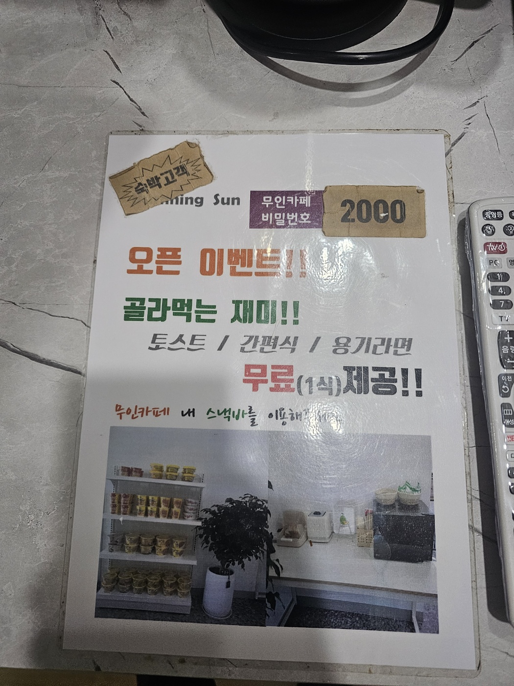 토스트, 컵라면, 잼, 기본 간식류 등이 준비되어 있었습니다.