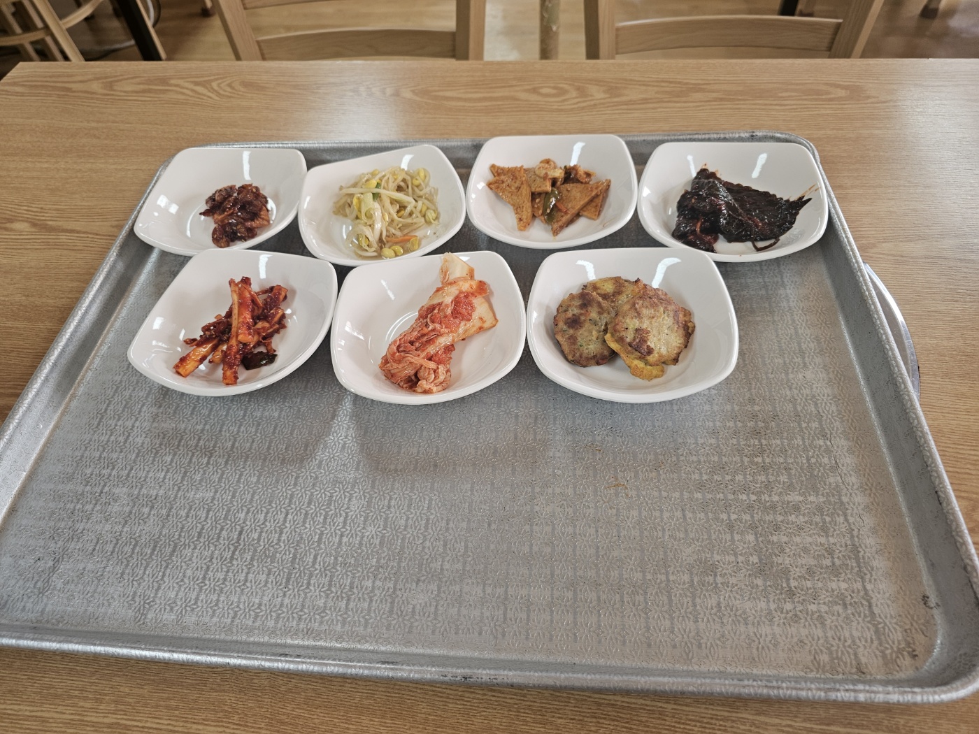 음식이 나오기 전 기본찬이 쟁반째로 담겨 나오는데, 양도 충분하고 구성도 다양했습니다.
