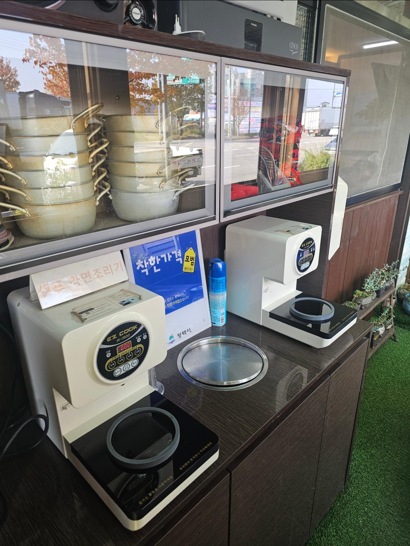 셀프 그릇 데워주는 기계도 있어서