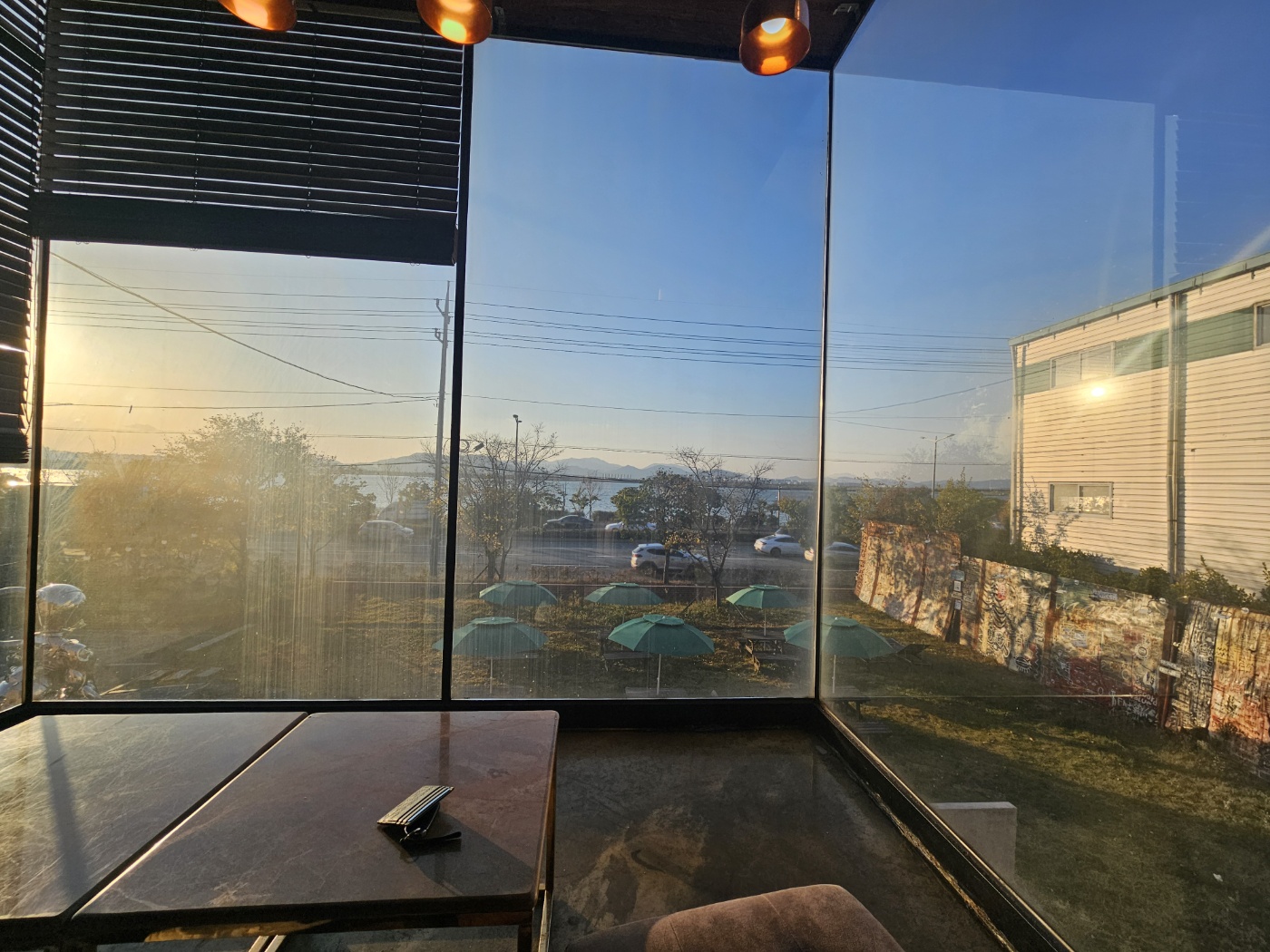 산과 도심이 함께 보이는 위치라 카페 밖 풍경도 꽤 멋진 편이에요.