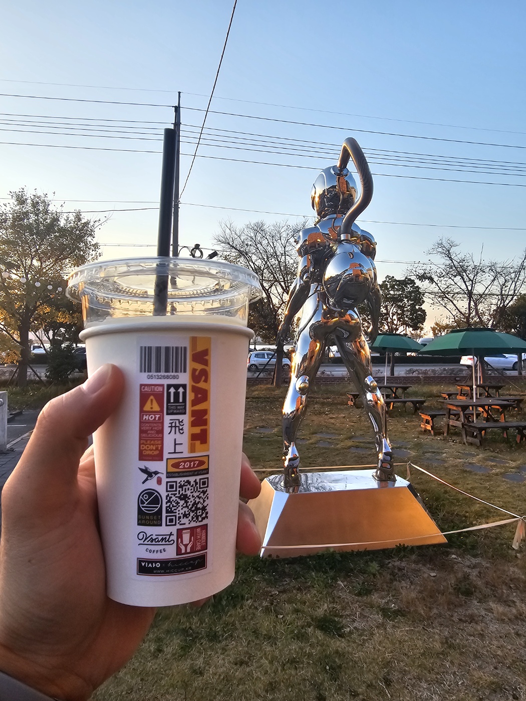 거대한 메탈릭 조형물이었습니다. 마치 미래 도시에서 온 듯한 형상에