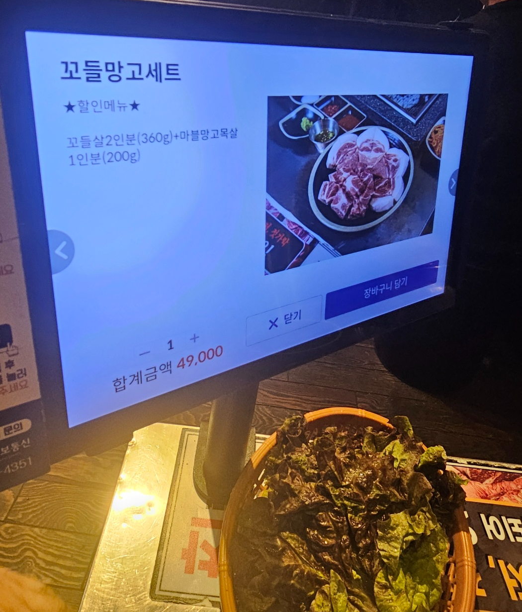 - ๊ธฐ๋ณธ ๋ฉ๋ด ์ธ์๋ ๋ง๋ธ๋ง๊ณ ๋ชฉ์ด, ์ค๋๊ฐ๋น, ๋ ์น๋ง์ด, ๋ผ์ง๊ป๋ฐ๊ธฐ ๋ฑ์ด ์์ด์. ๋ฌผ๋ก ์ธํธ ๋ฉ๋ด๋ ์ธ๊ธฐ๋ผ 2~3์ธ์ด ๊ฐ๋ฉด ๋ค์ํ ๋ถ์๋ฅผ ํจ๊ป ์ฆ๊ธฐ๊ธฐ ์ข์์.