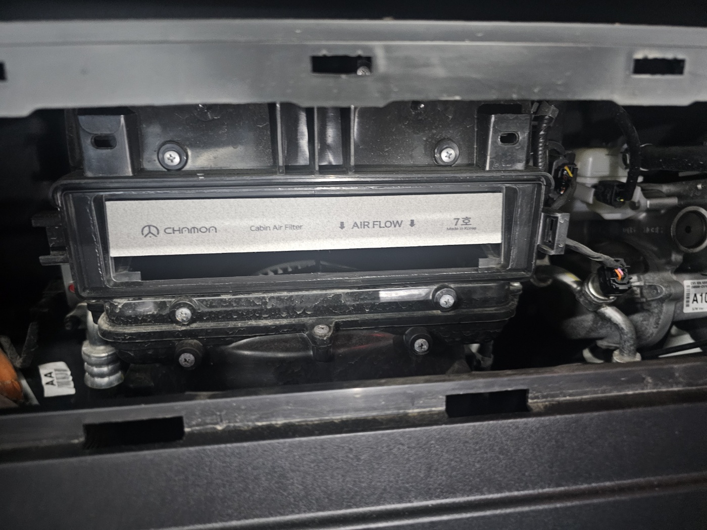 ๊ทธ๋์ ๋ฏธ๋ฃจ์ง ์๊ณ EV6 ์ ์ฉ ์์ด์ปจ ํํฐ๋ก ๊ต์ฒด๋ฅผ ์งํํ์ต๋๋ค.