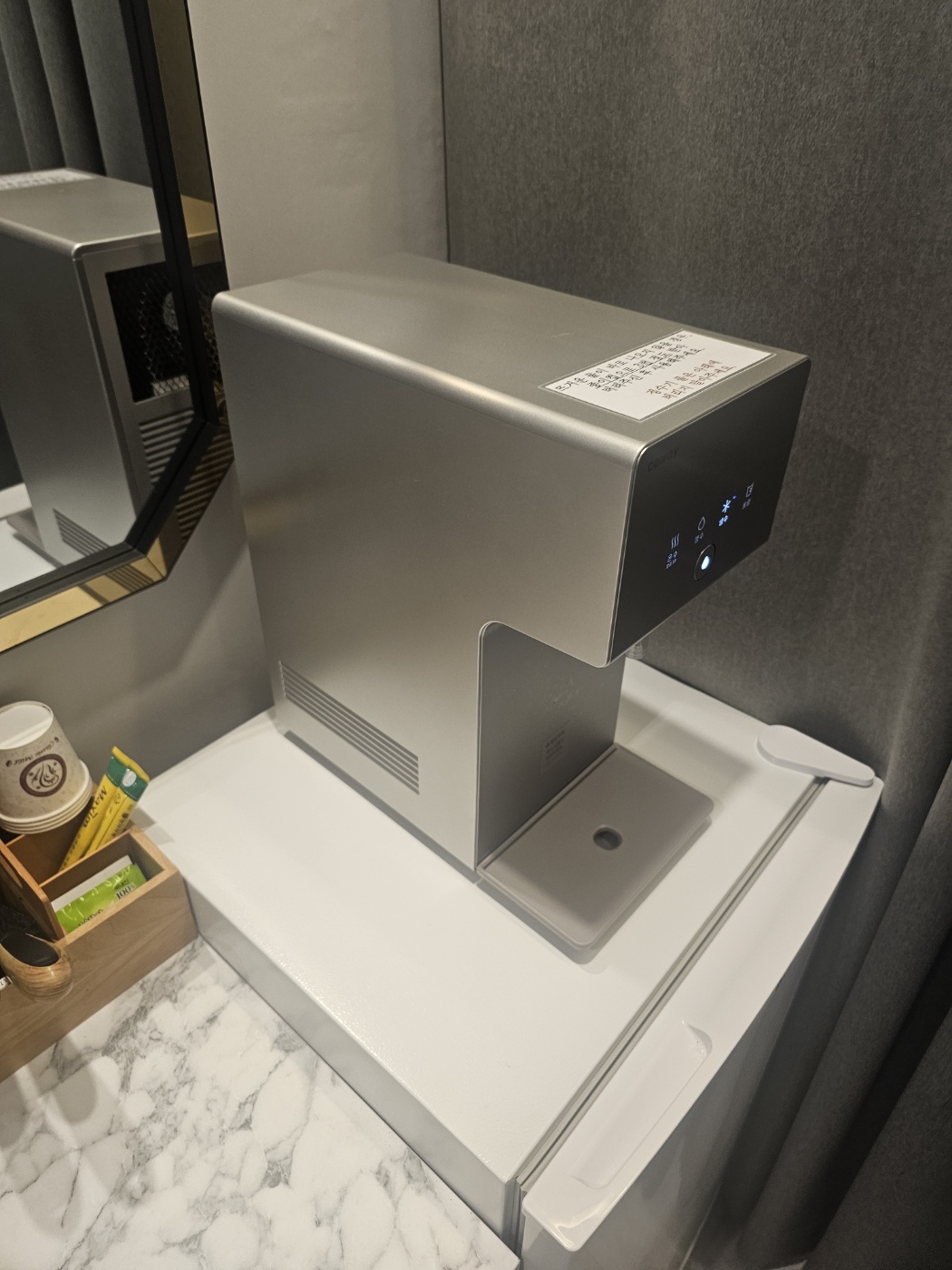 ์ฌ์ฉ ์์ฒด์ ํฐ ๋ฌธ์ ๋ ์์์ง๋ง, ๋ฌผ์ด ๊ณ์ ๋จ์ด์ง๋ ์๋ฆฌ๊ฐ ์๋ฏผํ ๋ถ๋ค์๊ฒ ๋ถํธํ ์ ์์ด ๋ณด์์ด์. ์ด ๋ถ๋ถ์ ๋น ๋ฅธ ์๋ฆฌ๊ฐ ์ด๋ฃจ์ด์ง๋ฉด ๋ ์ข์ ํ๊ฐ๋ฅผ ๋ฐ์ ์ ์์ ๊ฒ ๊ฐ์ต๋๋ค.