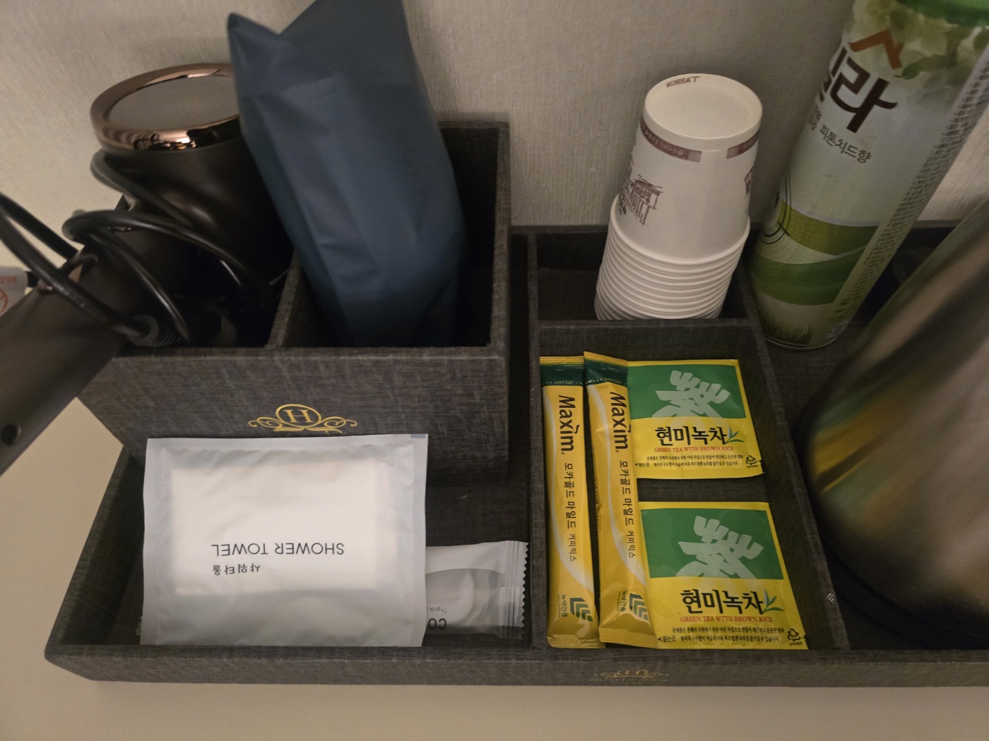 - ์ถฉ์ ํฌ์ธํธ๊ฐ ๋ง๊ณ ์ปคํผ, ๋ฌผ, ์๊ฑด ๊ตฌ์ฑ ์ข์