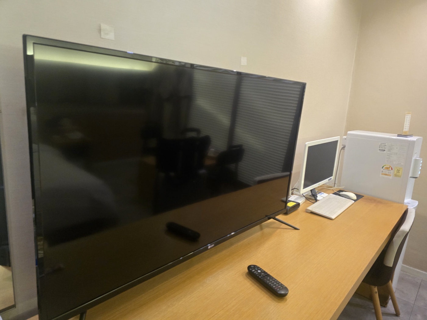 - 🖥️ 대형 TV와 PC: 침대에 누워 편하게 볼 수 있는 대형 TV와 기본적인 업무가 가능한 PC가 비치되어 있습니다.