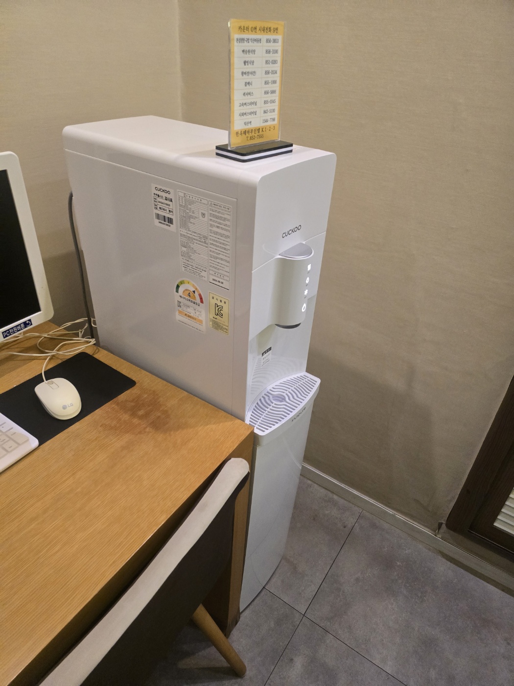- 💧 정수기 비치: 객실마다 쿠쿠 정수기가 설치되어 있어 생수를 따로 사지 않아도 되는 편리함은 있었습니다.